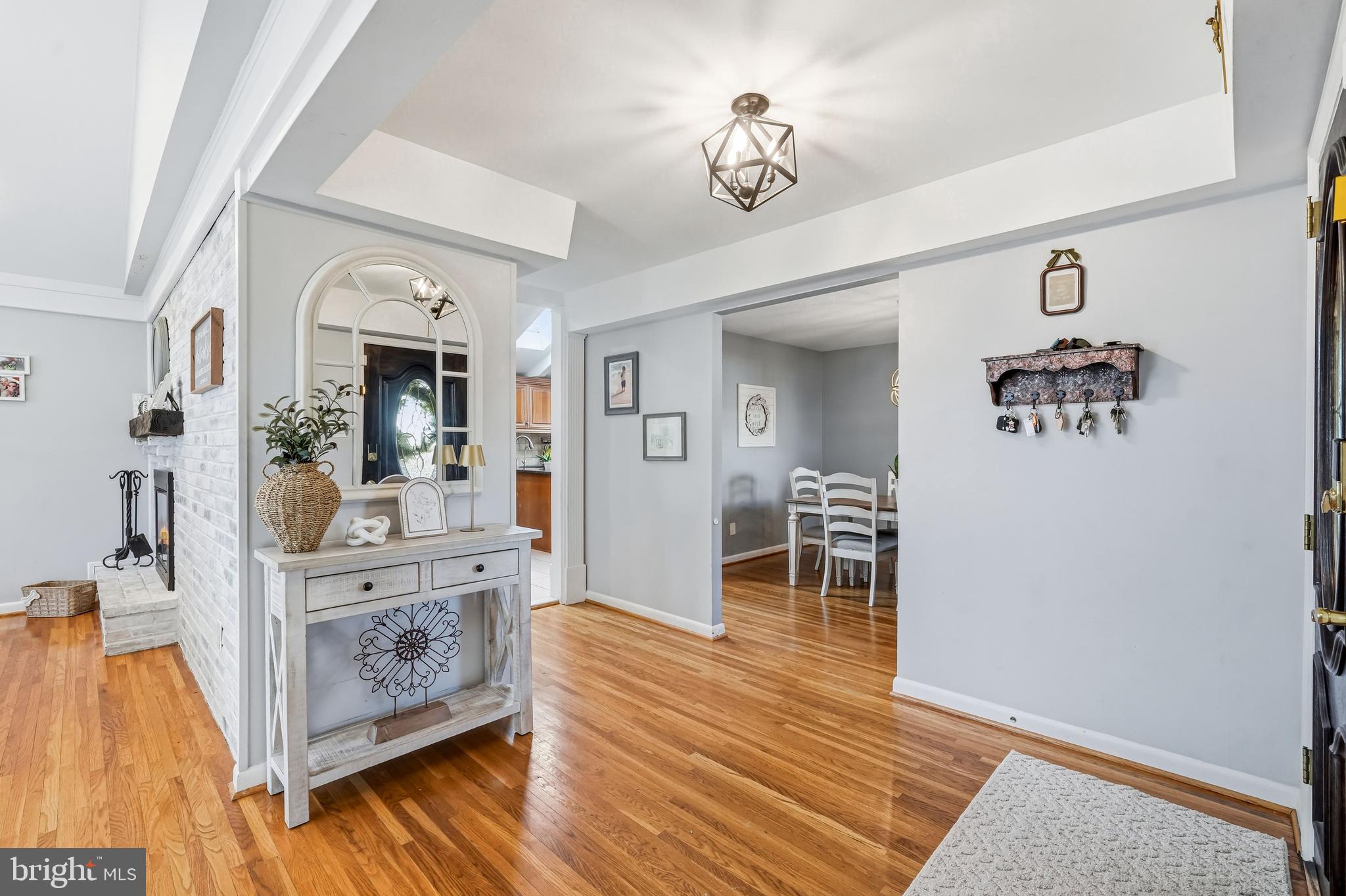 Welcome to 217 Redstone Ridge an expanded and beautifully maintained home located on one of the most desirable streets in Barclay. Classic brickwork, crisp siding, and professionally landscaped grounds create inviting curb appeal, while the charming front porch sets the tone for the warmth found throughout the interior. Step inside to discover bright, open living spaces filled with natural light and character. The stunning kitchen serves as the heart of the home, featuring soaring vaulted ceilings with multiple skylights, rich wood cabinetry, granite countertops, and a striking double-sided brick fireplace that connects seamlessly to the adjacent dining and sitting areas. A large bay window frames serene views of the yard, creating an atmosphere that feels bright and welcoming from morning to evening. Just off the kitchen, the expansive family room offers vaulted ceilings, recessed lighting, hardwood floors, and a comfortable layout ideal for everyday living and entertaining. The double-sided fireplace adds warmth and charm to both rooms, giving the home a cozy, connected feel. A lower-level bonus room provides flexible additional living space--perfect for a playroom, media room, or home office--complete with daylight windows and updated flooring. There is also a fourth bedroom on this floor. Upstairs, the bedroom level features spacious rooms with hardwood floors, ample natural light, and a neutral, move-in-ready palette. The primary suite stands out as a true retreat, complete with generous closet space and a beautifully finished en-suite bathroom featuring a glass-enclosed shower, jetted soaking tub, and elegant tilework. Out back, a large Trex-style deck offers the perfect outdoor escape with multiple seating areas, room for grilling and dining, and peaceful wooded views. It's an ideal space for relaxation or hosting friends and family. Located near Cherry Hill's top-rated schools, major highways, shopping, and dining, 217 Redstone Ridge offers the perfect blend of style, comfort, and convenience--ready to welcome its next owner.