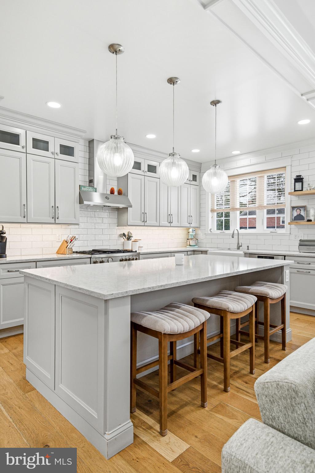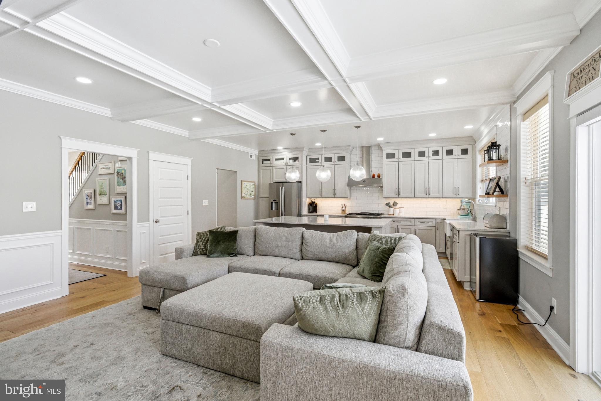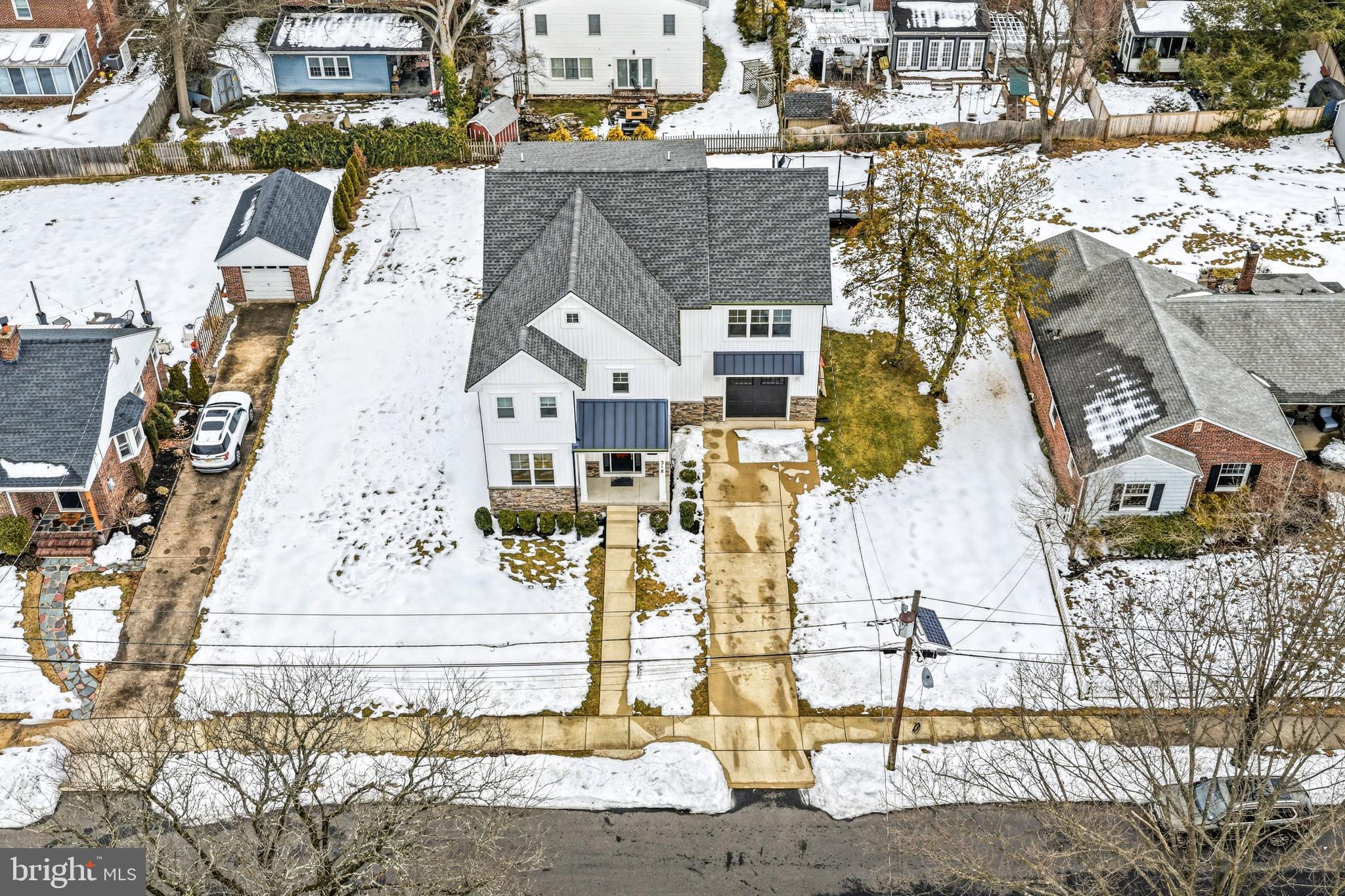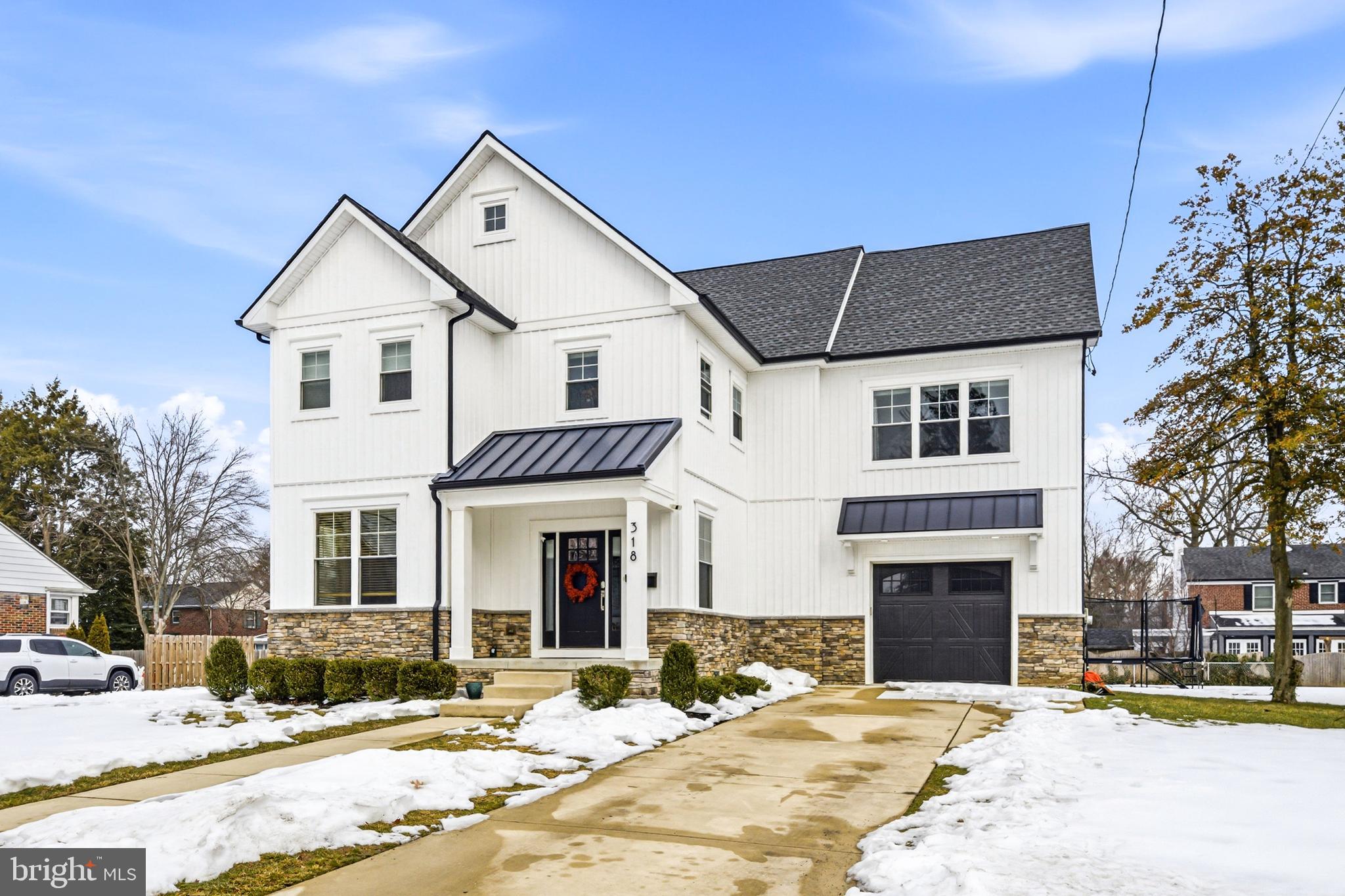 Set on an oversized lot along one of Haddonfield's most desirable streets, 318 Ardmore Avenue is a 2020 build that blends timeless architecture with thoughtful design across more than 3,400 square feet of finished living space. The curb appeal is immediate--crisp white siding, stone accents, and a welcoming front porch that feels both classic and current. Inside, a light-filled foyer showcases custom millwork, wide-plank hardwood floors, and a striking staircase that sets the tone for the level of craftsmanship found throughout the home. The main level is designed for everyday living and effortless entertaining. A beautifully appointed kitchen anchors the space with a large center island, custom cabinetry, quartz countertops, stainless steel appliances, and statement pendant lighting. The kitchen flows seamlessly into the living room, highlighted by a coffered ceiling, gas fireplace, and oversized windows that flood the space with natural light. A dedicated dining area, mudroom, and powder room complete the first floor with intention and function. The second level offers a well-planned layout with generously sized bedrooms, a full hall bath, and a true primary suite retreat featuring a walk-in closet and a spa-inspired bath with double vanity and oversized glass shower. A conveniently located laundry room adds everyday ease. The third floor provides flexible bonus space ideal for a home office, playroom, or guest suite, while the finished basement extends the living area even further--perfect for a media room, gym, or additional workspace, with a half bath already in place.Out back, the expansive yard offers room to entertain and space to grow, all just moments from award-winning schools, downtown shops and dining, and the PATCO line.
