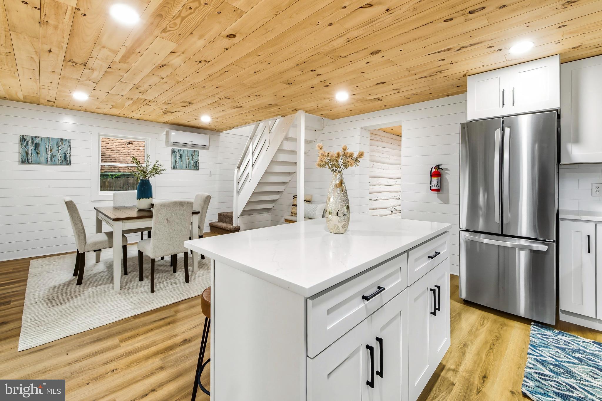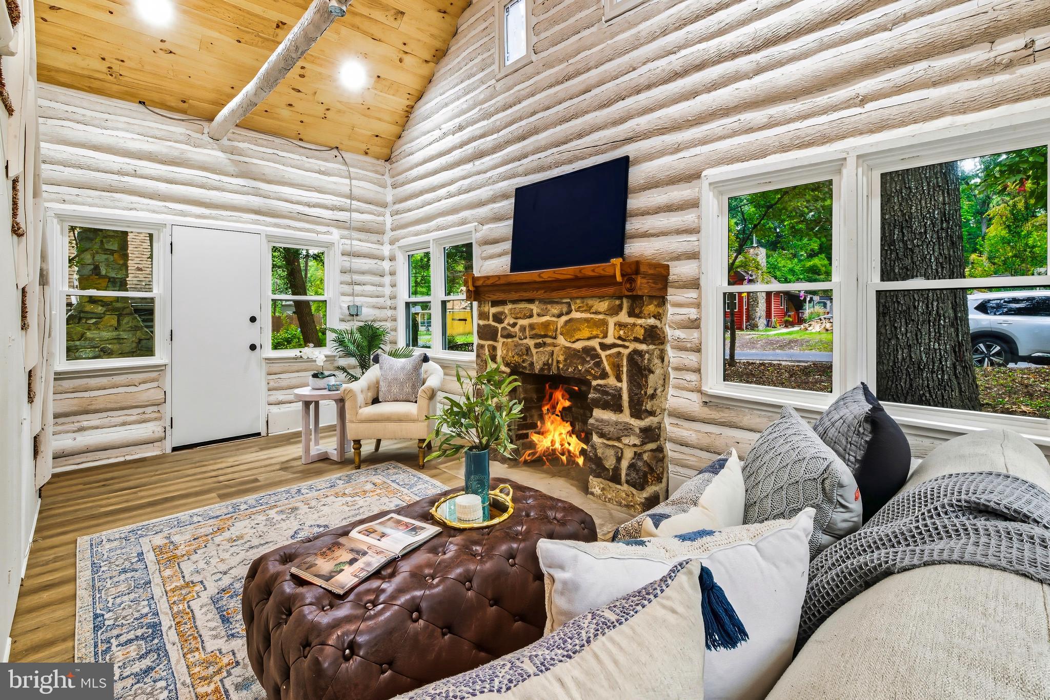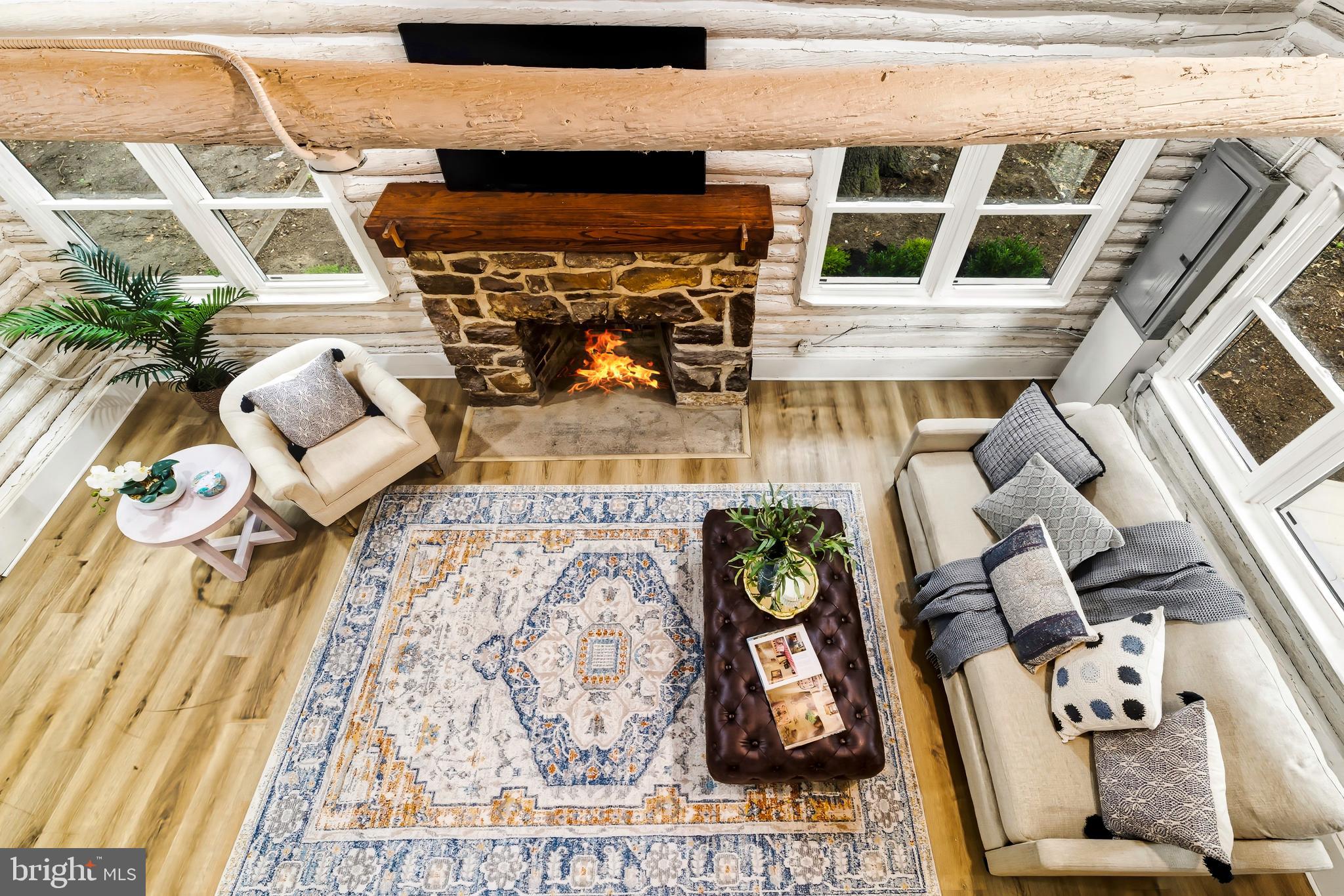 Welcome to this beautifully renovated three-bedroom, two-bathroom log cabin in Rancocas Woods neighborhood of Mount Laurel. Nestled among mature trees, the home has rustic charm with modern elegance, offering a peaceful retreat just minutes from everyday conveniences. Step inside to a bright, open-concept living space highlighted by vaulted ceilings, fresh paint, and all-new flooring. The living room features a striking stone fireplace, creating the perfect centerpiece for gatherings both large and small. The kitchen has been completely redesigned with white shaker cabinetry, quartz countertops, stainless steel appliances, and a spacious island with seating--ideal for entertaining. Just off the kitchen, a light-filled dining area overlooks the wooded yard, seamlessly connecting the indoors to nature. Both bathrooms have been fully updated with timeless tilework, new vanities, and sleek black fixtures. Each of the three bedrooms is generously sized, providing comfort and flexibility for family, guests, or a home office. Downstairs there is a fourth room which can be used as a home office or additional bedroom. The renovation is truly complete with a brand-new septic system. Every detail has been thoughtfully considered to create a home that feels brand new while retaining the warmth and character of its setting. Set within the Rancocas Woods, this home offers a serene natural backdrop while being close to shopping, dining, parks, and major highways for an easy commute. Whether enjoying quiet mornings on the deck or cozy evenings by the fire, 6 Oak Lane delivers the perfect combination of comfort, convenience, and style.