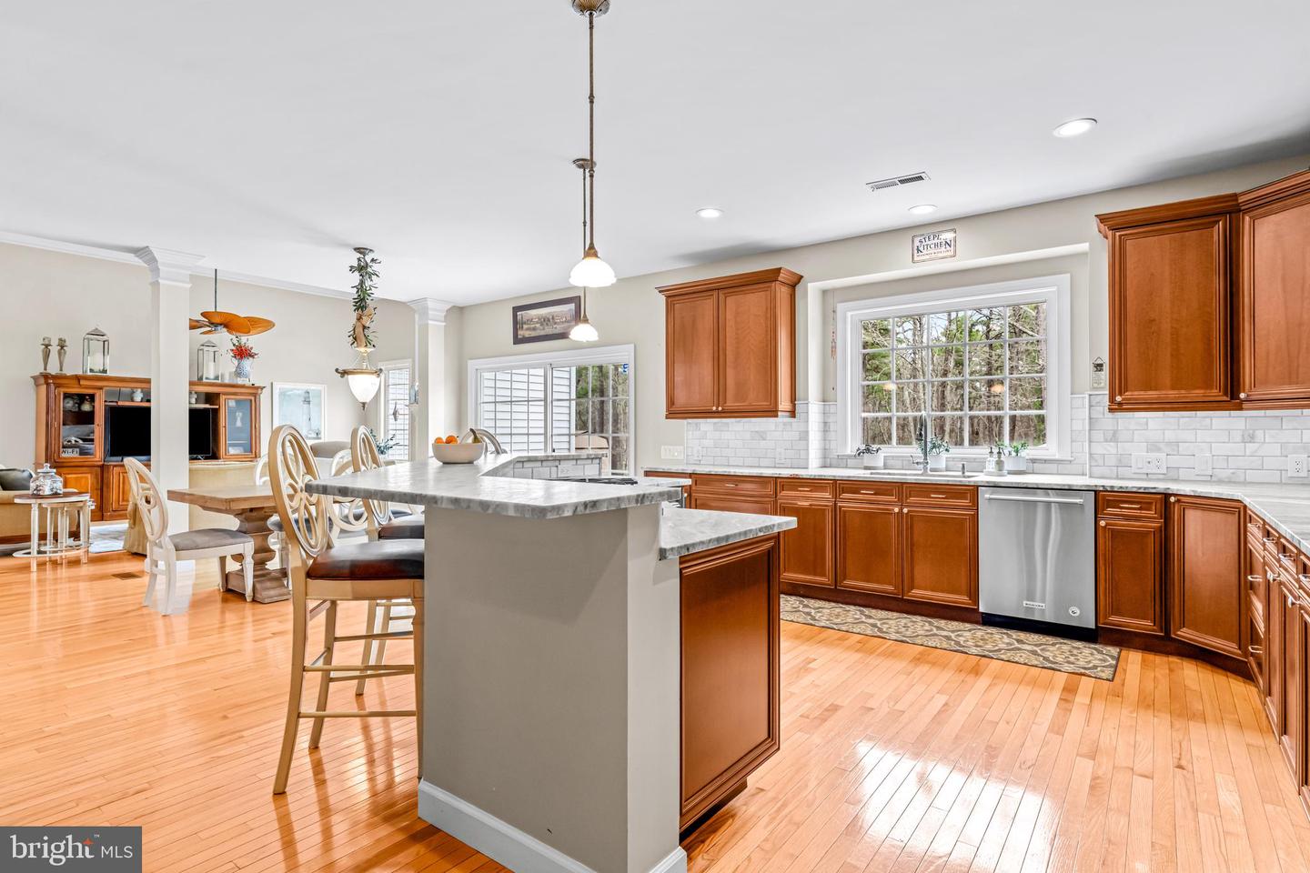 Welcome to 8 Somerton Square located on a private cul de sac in the back of the desirable neighborhood of Highbridge. This extremely well-maintained home was designed by the current (original) owners and custom built by Steliga. The circular driveway, adorned with post lighting, sets the stage for an impressive arrival. As you step through the double door entry, you'll be greeted by an abundance of natural light and an open floor plan that seamlessly connects the living spaces. Discover the allure of the main level with its hardwood floors, extra-wide hallway, and a large kitchen equipped with a 48" side-by-side Sub Zero refrigerator, cherry wood cabinets with under-cabinet LEDs, marble backsplash, marble countertops, and a spacious walk-in pantry with cabinetry and granite countertops. The primary suite features a tray ceiling, large private bath with dual vanities and soaking tub and a walk-in closet. Down the hall are three additional sizable bedrooms. The lower level boasts a large, finished basement with laminate flooring, offering approximately 1500 sq ft of space. The allure of this home extends to the outdoors, where a heated 18' x 40' inground pool with LED lighting and Deck Jets awaits, surrounded by professional landscaping and outdoor lighting, creating a private oasis for relaxation and entertainment. In addition to all this home has to offer, the oversized three car garage was designed without any posts in the space and the floors have an epoxy finish. Off the garage is an additional storage shed that has been outfitted with shelving from the Container Store. The property also comes with an extra deep well for the irrigation system. With its exceptional craftsmanship, modern amenities, and meticulous maintenance, this home exemplifies comfort, luxury, and functionality. Don't miss the opportunity to make this extraordinary property your own!
